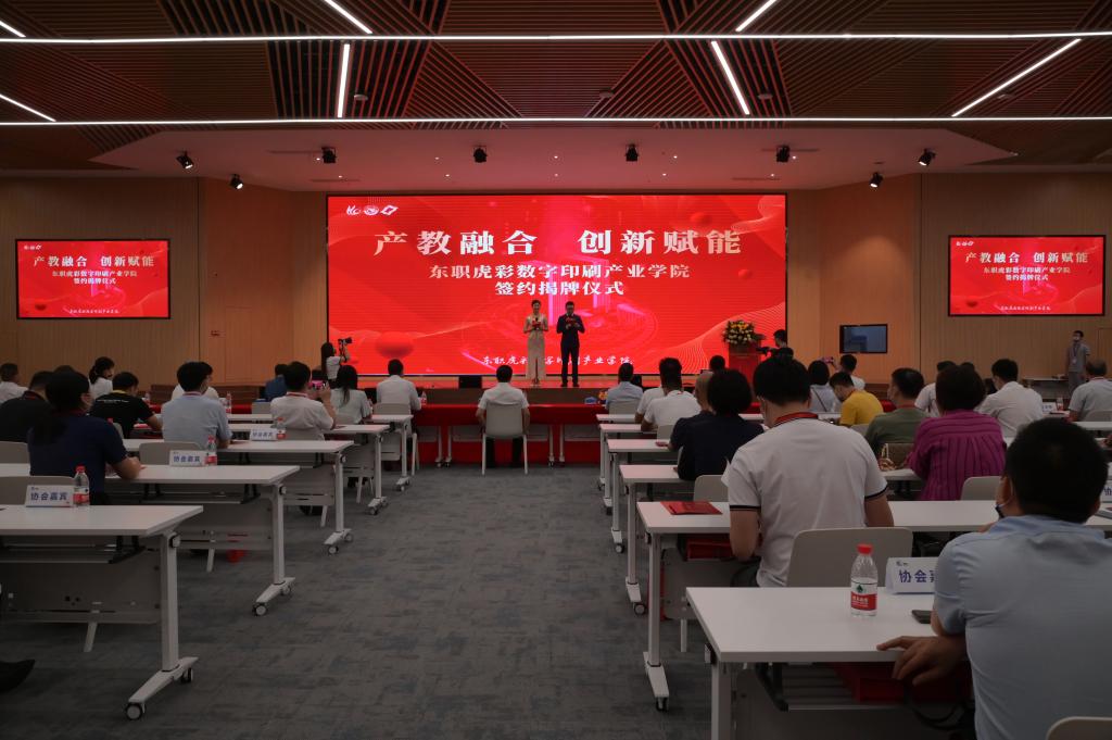 据了解,东职虎彩数字印刷产业学院设于虎彩印艺股份有限公司虎门基地内,占地约1600平方米,学院将积极探索“双元制”技术技能人才培养模式,通过建立双主体协同育人机制,实现产教深度融合。学院还将联合相关力量建立“双师型”教师工作室、“大师工作室”,与东莞市出版印刷业协会等联合举办技能大赛、创新创业训练营和创新创业大赛,并结合“数字印刷产教融合创新平台”开展数字印刷技术等领域的标准研制和政策咨询。