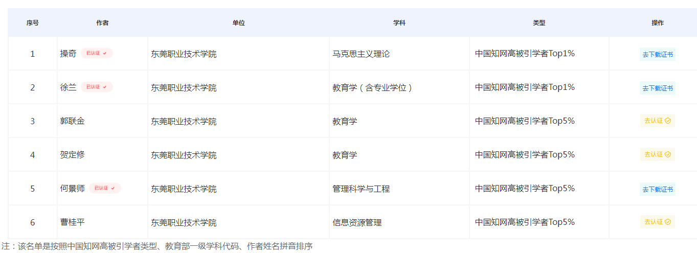 近日,中国知网中国科学文献计量评价研究中心遴选并公布了“2024中国知网高被引学者”预发布名单,我校操奇教授、徐兰副教授分别入选马克思主义理论学科、教育学(含专业学位)学科的高被引学者TOP1%名单,贺定修教授、何景师教授、曹桂平研究馆员、郭联金副教授四名教师入选教育学学科、管理科学与工程学科、信息资源管理学科、教育学学科的高被引学者TOP5%名单。