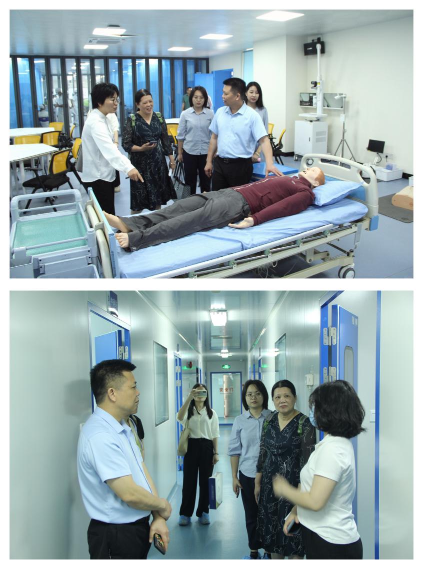 会上,王志明处长对南宁市卫生学校一行的到来表示热烈欢迎,并简要介绍了我校的情况。双方就教育教学质量、人才队伍建设、职业技能培训等方面进行了深入交流。座谈结束后,来访团参观了智能医学虚拟仿真实训基地、GMP固体制剂生产模拟车间和劳动教育实践基地——药植园。