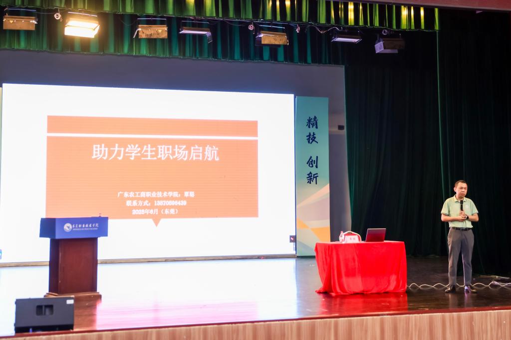 本次培训特邀广东农工商职业技术学院创业学院副院长覃聪担任主讲嘉宾。覃院长以“助力学生职场启航”为主题,从职业规划指导、就业能力提升、职场适应培养等三个维度展开系统讲解。通过典型案例分析、互动问答等形式,主讲人深入浅出地分享了职业指导的前沿理念和实用技巧。参训班主任认真聆听,积极参与互动,纷纷表示此次培训内容紧贴实际,对今后开展学生就业指导工作具有重要的实践指导价值。