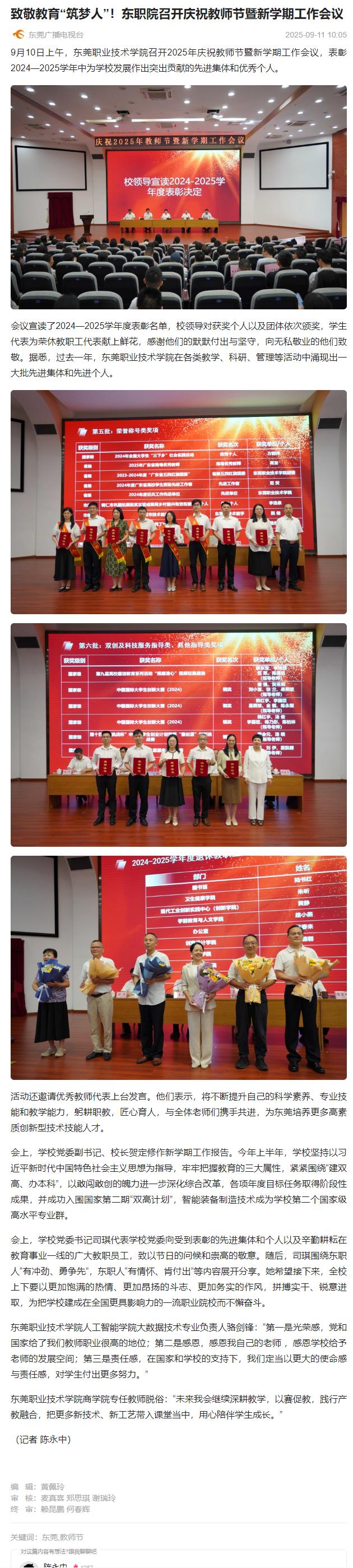 【东莞广播电视台】致敬教育“筑梦人”!东职院召开庆祝教师节暨新学期工作会议